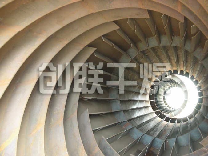 湿物料从干燥机一端投入后,在内筒均布的抄板器翻动下,物料在干燥器内均匀分布与分散,并与并流(逆流)的热空气充分接触,加快了干燥传热,传至推动力。在干燥过程中,物料在带有倾斜度的抄板和热气流的作用下,可调控地运动至干燥机另一段星形卸料阀排出成品。