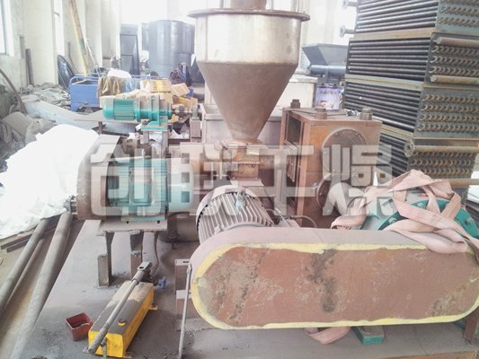 挤压造粒的形式可以有对辊式和轮辗式两种,对辊式挤压是先压成大块,再破碎成颗粒,这样装置的能力大、颗粒强度高、能耗低,对辊挤压在国外使用广泛。轮辗式是在辊表面直接做成有穴槽型的形状,一次挤成成型颗粒。产品强度较低有时需添加粘结剂。适合做有机肥和复合肥等颗粒肥料。