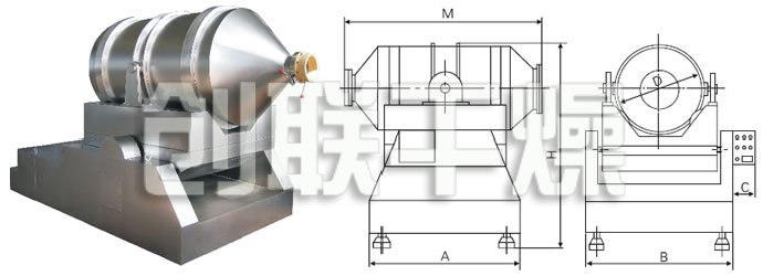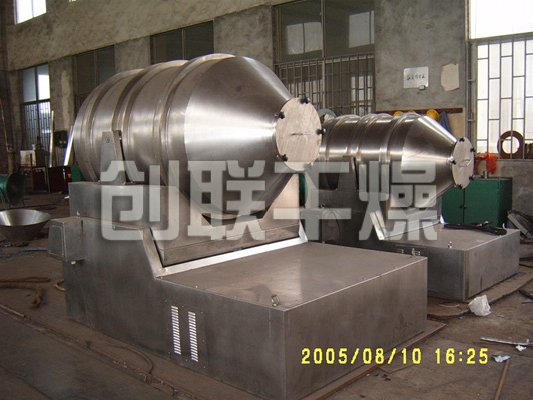 EYH二维混料机的转筒可同时进行二个运动,一个为转筒的转动,另一个为转筒随摆动架的摆动。被混合物料在转筒内随转筒转动、翻转、混合的同时,又随转筒的摆动而发生左右来回的掺混运动,在这两个运动的共同作用下,物料在短时间内得到充分的混合。EYH二维混料机适合所有粉、粒状物料的混合。
