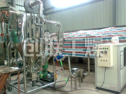中药浸膏高速离心喷雾装置是离心式喷雾干燥技术在特定物料干燥中的应用,也是利用高速离心式雾化器使物料分散成雾状,与热空气充分接触,完成瞬间干燥,形成粉状成品的干燥装置。