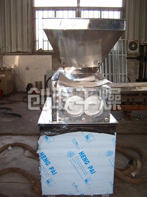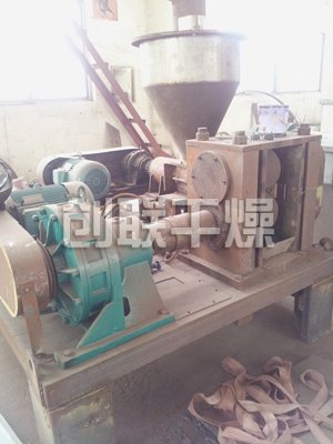 挤压造粒的形式可以有对辊式和轮辗式两种,对辊式挤压是先压成大块,再破碎成颗粒,这样装置的能力大、颗粒强度高、能耗低,对辊挤压在国外使用广泛。轮辗式是在辊表面直接做成有穴槽型的形状,一次挤成成型颗粒。产品强度较低有时需添加粘结剂。适合做有机肥和复合肥等颗粒肥料。