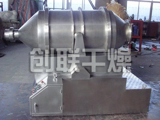 EYH二维混料机的转筒可同时进行二个运动,一个为转筒的转动,另一个为转筒随摆动架的摆动。被混合物料在转筒内随转筒转动、翻转、混合的同时,又随转筒的摆动而发生左右来回的掺混运动,在这两个运动的共同作用下,物料在短时间内得到充分的混合。EYH二维混料机适合所有粉、粒状物料的混合。