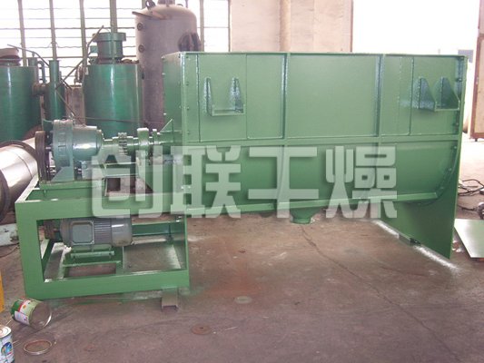 该机型由容器、螺旋搅拌叶片和传动部件组成:螺旋叶片一般做成双层或三层,外层螺旋将物料从两侧向中央汇集,内层螺旋将物料从中央两侧输送,形成对流混合。